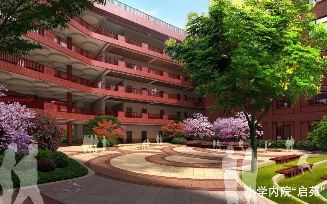 小学部的学习,以启发认知为主,考虑到学生集体活动的需求,故设计具有中国传统景观内庭院——“启苑”。寓为启迪儿童智慧,突出启发氛围的打造,满足开展户外课堂、户外剧场的需求。