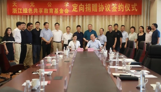 6月30日,天元公学与浙江绿色共享教育基金签署合作协议。双方将在人才培养、创新发展等方面深入合作,共同推进外文教育戏剧课程的研发与推广。原中共浙江省委常委、杭州市委书记,杭州城市学研究理事会理事长,浙江省首批新型重点专业智库浙江省城市治理研究中心主任、首席专家,浙江大学兼职教授、兼职博士生导师,中央美术学院客座教授、客座博士生导师,浙江省大运河文化?;ご欣敏吖椅幕敖ㄉ韫ぷ髯易裳被嶂魅危煸Ц母锝ㄉ枇斓夹∽樽槌ね豕?,浙江绿色共享教育基金会创始人、华立集团董事局主席汪力成,天元公学改革建设领导小组副组长、杭州城研中心党组书记、主任江山舞,天元公学改革建设领导小组副组长、中国棋院杭州分院党组书记、常务副院长杭天鹏,及爱心企业家和天元公学全体校级干部出席并见证签约活动。天元公学总校长王发高、浙江绿色共享教育基金会理事长韩萍代表双方签署协议。
